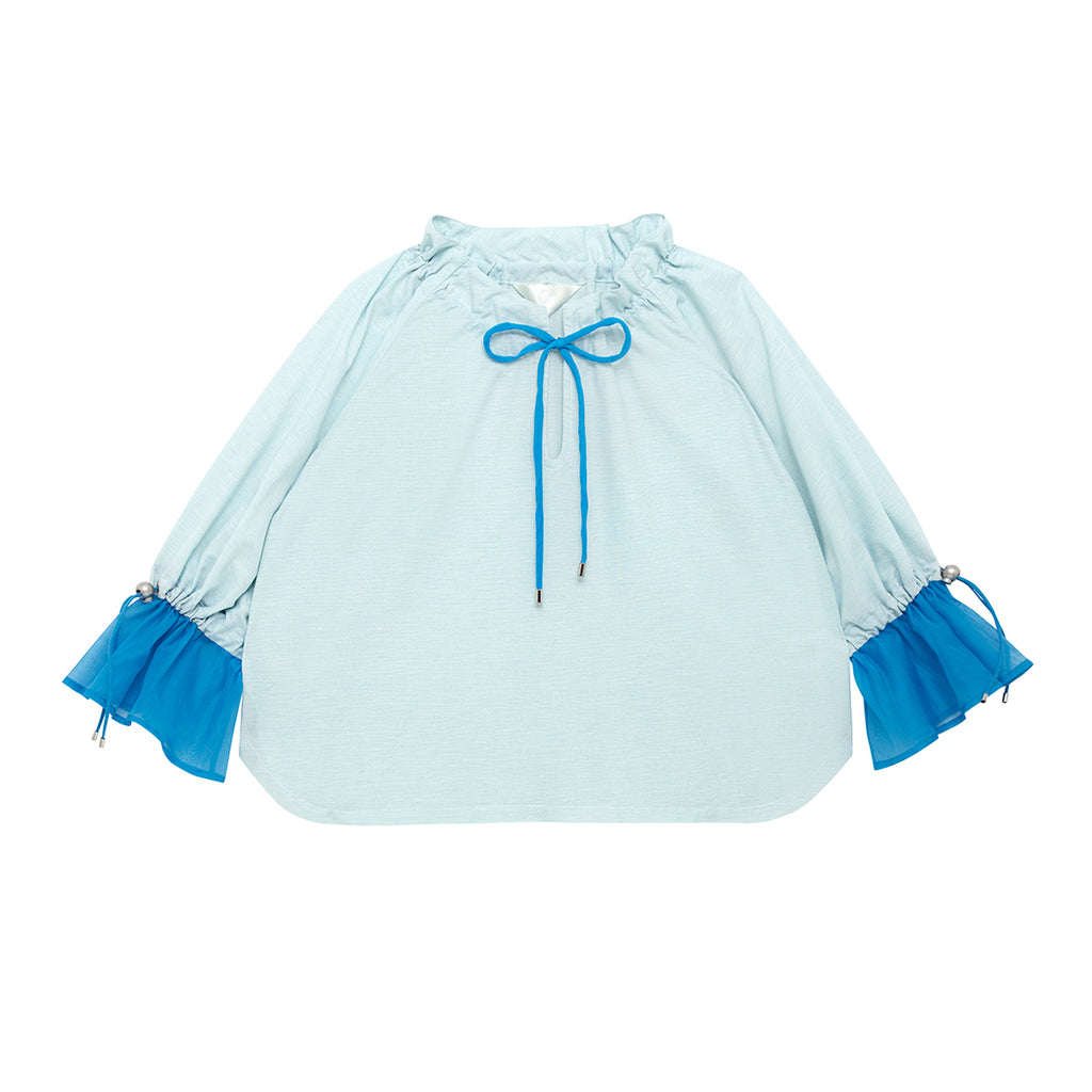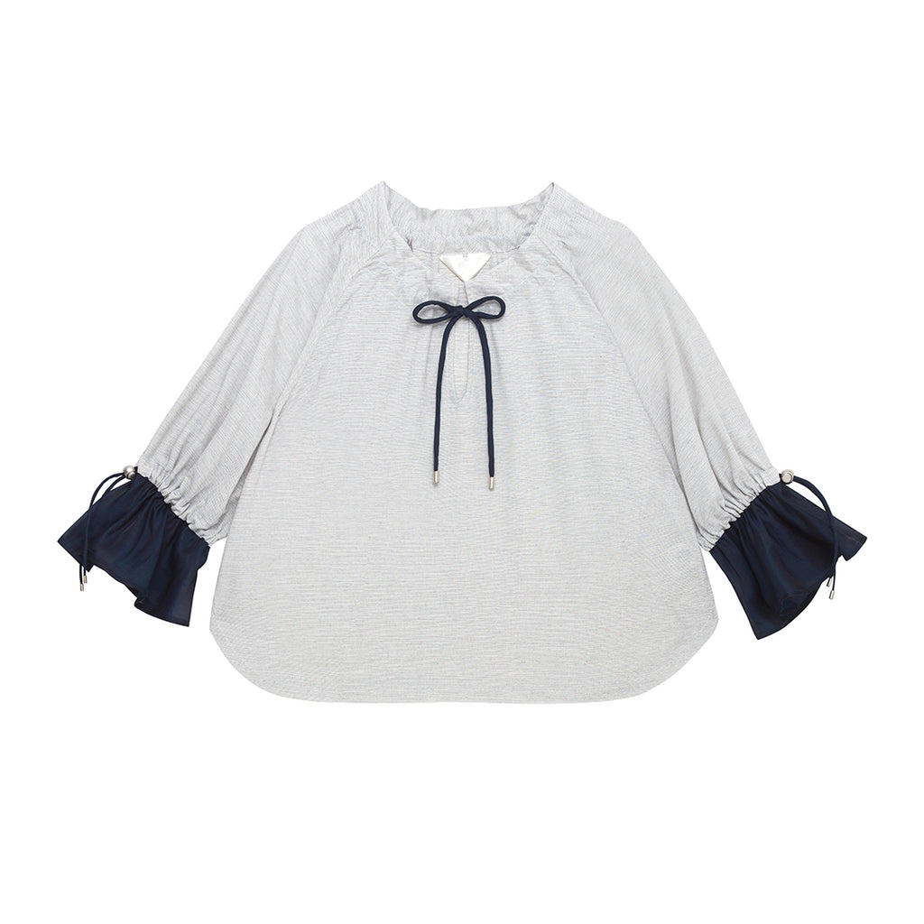 袖口のドローストリングを絞ることでシルエットを変え、パフスリーブとしても楽しめます。
